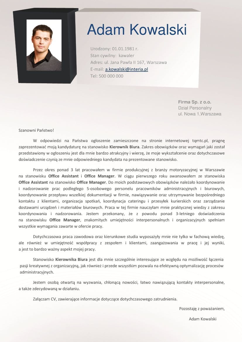 Innowacyjne dokumenty aplikacyjne najwyższej jakości, przygotowane przez profesjonalnych doradców zawodowych we współpracy z najlepszymi grafikami. Zaskocz przyszłego pracodawcę dobrze przygotowanymi dokumentami aplikacyjnymi.